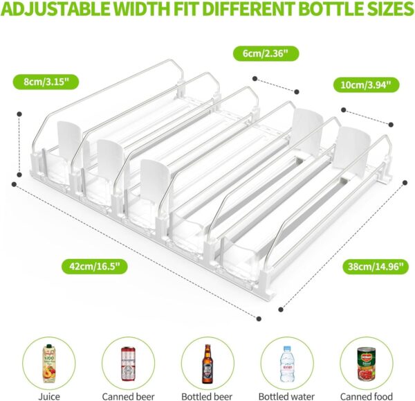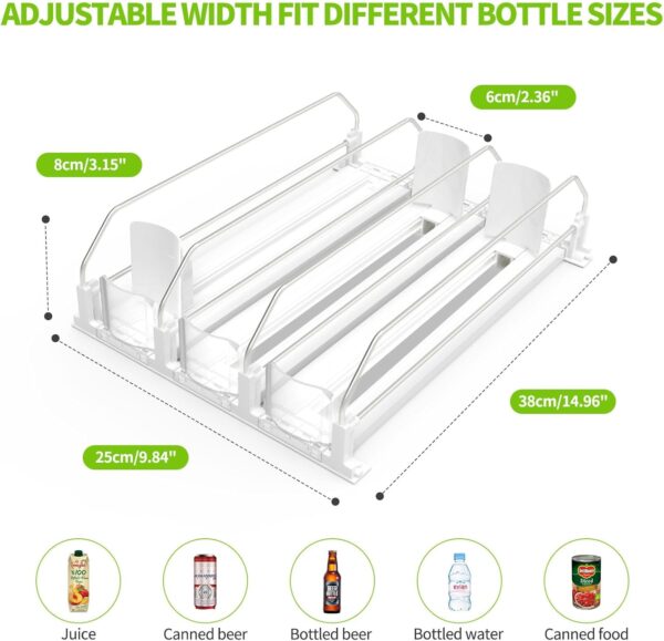 • Amplio almacenamiento y ajuste ajustable: con 5 filas y una longitud de 14.96 pulgadas, nuestro organizador de bebidas tiene capacidad para hasta 25 latas o botellas de varios tamaños (12 onzas, 16 onzas, 16.9 onzas, 20 onzas). Ajusta el ancho para un ajuste suave incluso para botellas más grandes
