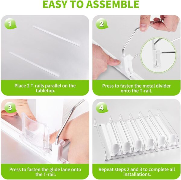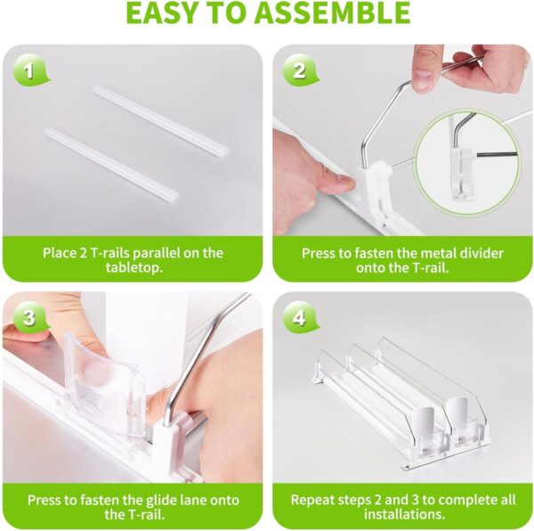 • Construido para durar: hecho de materiales seguros, este organizador de bebidas para refrigerador cuenta con particiones de metal resistentes al óxido, un empujador de ABS resistente y rieles horizontales personalizables para una durabilidad duradera
